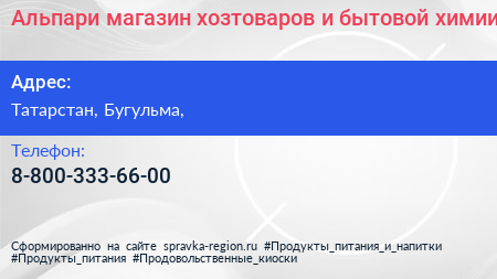 Альпари, магазин хозтоваров и бытовой химии по адресу Татарстан, Бугульма, в дальнейшем Организация, размещена в следующих категориях: