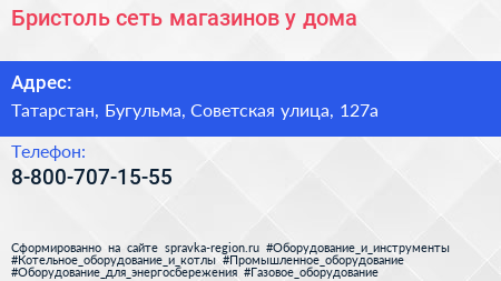 Бристоль, сеть магазинов у дома по адресу Татарстан, Бугульма, Советская улица, 127а в дальнейшем Организация, размещена в следующих категориях: