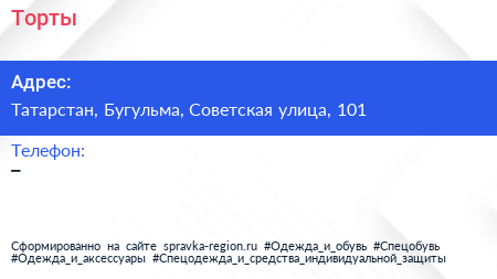 Торты по адресу Татарстан, Бугульма, Советская улица, 101 в дальнейшем Организация, размещена в следующих категориях: