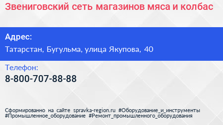 Звениговский, сеть магазинов мяса и колбас по адресу Татарстан, Бугульма, улица Якупова, 40 в дальнейшем Организация, размещена в следующих категориях: