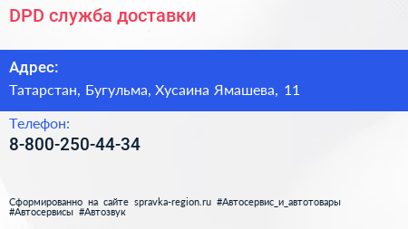 DPD, служба доставки по адресу Татарстан, Бугульма, Хусаина Ямашева, 11 в дальнейшем Организация, размещена в следующих категориях: