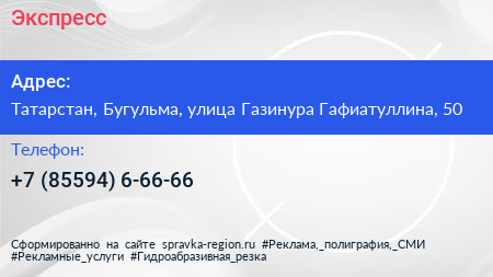 Экспресс по адресу Татарстан, Бугульма, улица Газинура Гафиатуллина, 50 в дальнейшем Организация, размещена в следующих категориях: