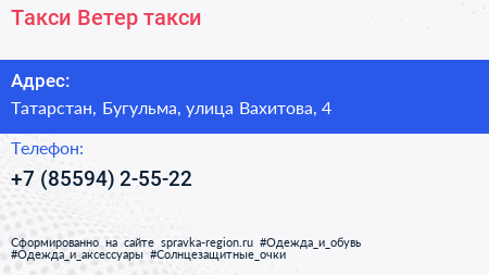 Такси Ветер, такси по адресу Татарстан, Бугульма, улица Вахитова, 4 в дальнейшем Организация, размещена в следующих категориях: