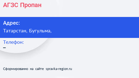 АГЗС Пропан по адресу Татарстан, Бугульма, в дальнейшем Организация, размещена в следующих категориях: