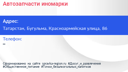 Автозапчасти иномарки по адресу Татарстан, Бугульма, Красноармейская улица, 86 в дальнейшем Организация, размещена в следующих категориях: