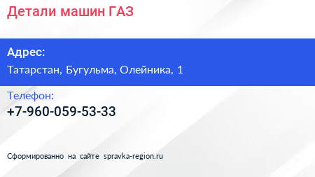 Детали машин ГАЗ по адресу Татарстан, Бугульма, Олейника, 1 в дальнейшем Организация, размещена в следующих категориях: