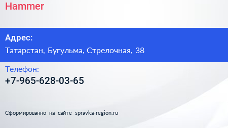 Hammer по адресу Татарстан, Бугульма, Стрелочная, 38 в дальнейшем Организация, размещена в следующих категориях: