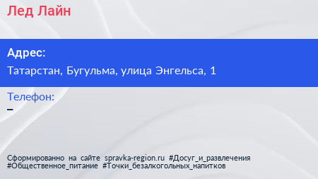 Лед Лайн по адресу Татарстан, Бугульма, улица Энгельса, 1 в дальнейшем Организация, размещена в следующих категориях: