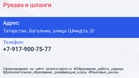 Рукава и шланги по адресу Татарстан, Бугульма, улица Шмидта, 2г в дальнейшем Организация, размещена в следующих категориях:
