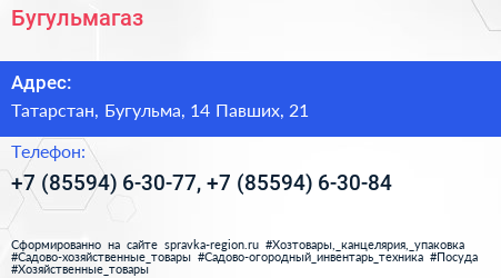 Бугульмагаз по адресу Татарстан, Бугульма, 14 Павших, 21 в дальнейшем Организация, размещена в следующих категориях: