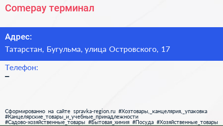 Comepay, терминал по адресу Татарстан, Бугульма, улица Островского, 17 в дальнейшем Организация, размещена в следующих категориях: