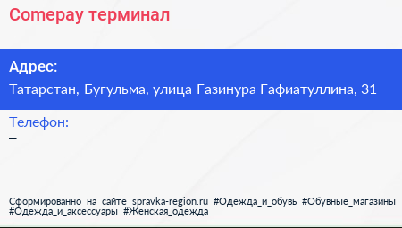 Comepay, терминал по адресу Татарстан, Бугульма, улица Газинура Гафиатуллина, 31 в дальнейшем Организация, размещена в следующих категориях: