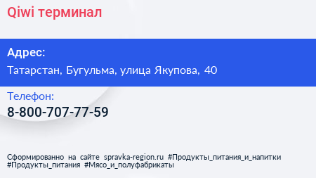 Qiwi, терминал по адресу Татарстан, Бугульма, улица Якупова, 40 в дальнейшем Организация, размещена в следующих категориях: