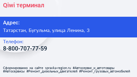 Qiwi, терминал по адресу Татарстан, Бугульма, улица Ленина, 3 в дальнейшем Организация, размещена в следующих категориях: