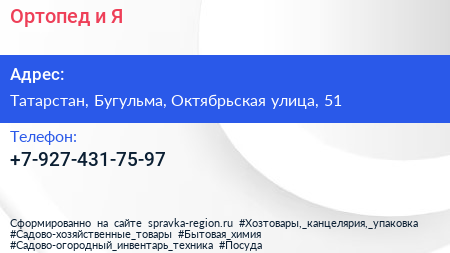 Ортопед и Я по адресу Татарстан, Бугульма, Октябрьская улица, 51 в дальнейшем Организация, размещена в следующих категориях: