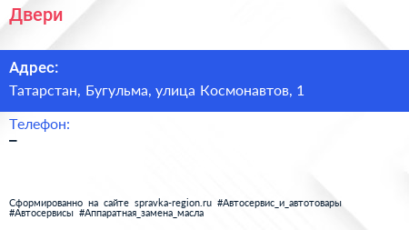 Двери по адресу Татарстан, Бугульма, улица Космонавтов, 1 в дальнейшем Организация, размещена в следующих категориях:
