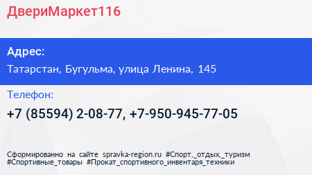 ДвериМаркет116 по адресу Татарстан, Бугульма, улица Ленина, 145 в дальнейшем Организация, размещена в следующих категориях: