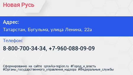 Новая Русь по адресу Татарстан, Бугульма, улица Ленина, 22а в дальнейшем Организация, размещена в следующих категориях: