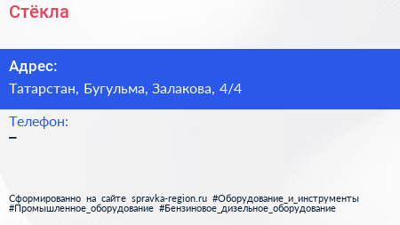 Стёкла по адресу Татарстан, Бугульма, Залакова, 4/4 в дальнейшем Организация, размещена в следующих категориях: