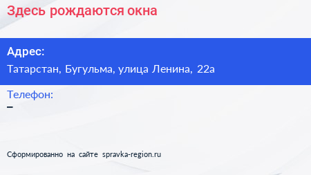 Здесь рождаются окна по адресу Татарстан, Бугульма, улица Ленина, 22а в дальнейшем Организация, размещена в следующих категориях: