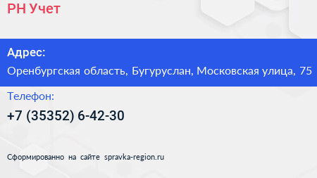 РН-Учет по адресу Оренбургская область, Бугуруслан, Московская улица, 75 в дальнейшем Организация, размещена в следующих категориях: