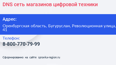 DNS, сеть магазинов цифровой техники по адресу Оренбургская область, Бугуруслан, Революционная улица, 41 в дальнейшем Организация, размещена в следующих категориях: