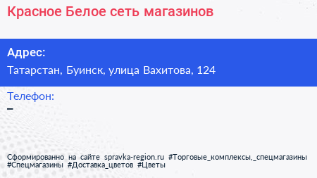 Красное & Белое, сеть магазинов по адресу Татарстан, Буинск, улица Вахитова, 124 в дальнейшем Организация, размещена в следующих категориях: