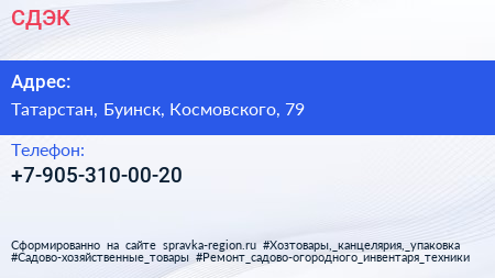 СДЭК по адресу Татарстан, Буинск, Космовского, 79 в дальнейшем Организация, размещена в следующих категориях: