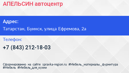 АПЕЛЬСИН, автоцентр по адресу Татарстан, Буинск, улица Ефремова, 2а в дальнейшем Организация, размещена в следующих категориях: