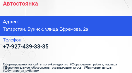 Автостоянка по адресу Татарстан, Буинск, улица Ефремова, 2а в дальнейшем Организация, размещена в следующих категориях: