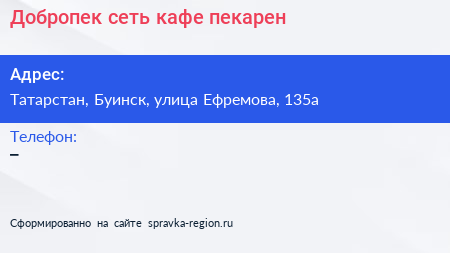 Добропек, сеть кафе-пекарен по адресу Татарстан, Буинск, улица Ефремова, 135а в дальнейшем Организация, размещена в следующих категориях: