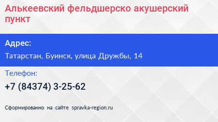 Алькеевский фельдшерско-акушерский пункт по адресу Татарстан, Буинск, улица Дружбы, 14 в дальнейшем Организация, размещена в следующих категориях: