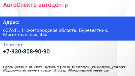 АвтоСпектр, автоцентр по адресу 607611, Нижегородская область, Буревестник, Магистральная, 44а в дальнейшем Организация, размещена в следующих категориях: