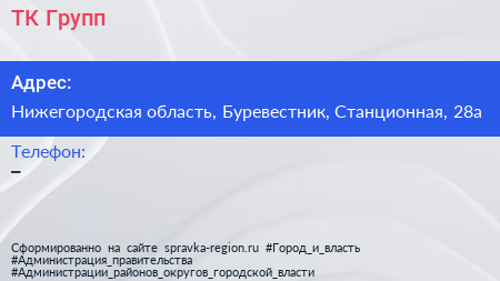 ТК-Групп по адресу Нижегородская область, Буревестник, Станционная, 28а в дальнейшем Организация, размещена в следующих категориях: