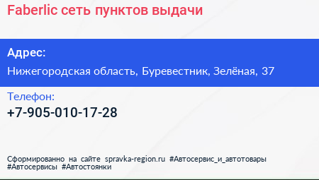 Faberlic, сеть пунктов выдачи по адресу Нижегородская область, Буревестник, Зелёная, 37 в дальнейшем Организация, размещена в следующих категориях: