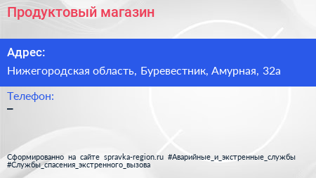 Продуктовый магазин по адресу Нижегородская область, Буревестник, Амурная, 32а в дальнейшем Организация, размещена в следующих категориях: