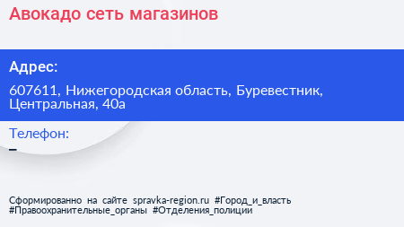 Авокадо, сеть магазинов по адресу 607611, Нижегородская область, Буревестник, Центральная, 40а в дальнейшем Организация, размещена в следующих категориях: