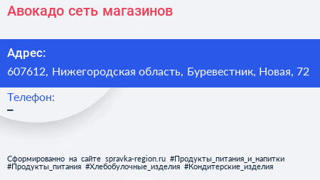 Авокадо, сеть магазинов по адресу 607612, Нижегородская область, Буревестник, Новая, 72 в дальнейшем Организация, размещена в следующих категориях: