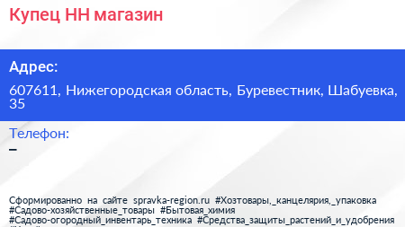 Купец НН, магазин по адресу 607611, Нижегородская область, Буревестник, Шабуевка, 35 в дальнейшем Организация, размещена в следующих категориях:
