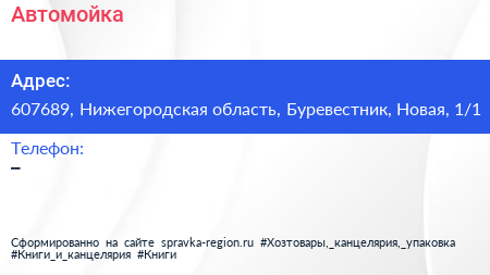 Автомойка по адресу 607689, Нижегородская область, Буревестник, Новая, 1/1 в дальнейшем Организация, размещена в следующих категориях: