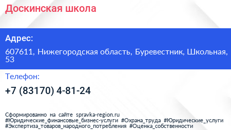 Доскинская школа по адресу 607611, Нижегородская область, Буревестник, Школьная, 53 в дальнейшем Организация, размещена в следующих категориях: