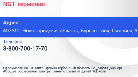 NGT, терминал по адресу 607612, Нижегородская область, Буревестник, Гагарина, 9 в дальнейшем Организация, размещена в следующих категориях: