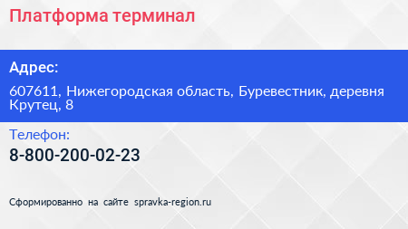 Платформа, терминал по адресу 607611, Нижегородская область, Буревестник, деревня Крутец, 8 в дальнейшем Организация, размещена в следующих категориях:
