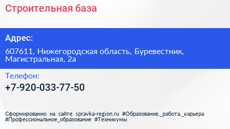 Строительная база по адресу 607611, Нижегородская область, Буревестник, Магистральная, 2а в дальнейшем Организация, размещена в следующих категориях: