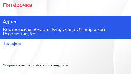 Пятёрочка по адресу Костромская область, Буй, улица Октябрьской Революции, 96 в дальнейшем Организация, размещена в следующих категориях: