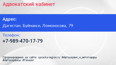 Адвокатский кабинет по адресу Дагестан, Буйнакск, Ломоносова, 79 в дальнейшем Организация, размещена в следующих категориях: