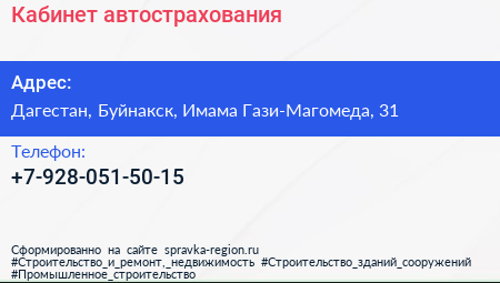 Кабинет автострахования по адресу Дагестан, Буйнакск, Имама Гази-Магомеда, 31 в дальнейшем Организация, размещена в следующих категориях: