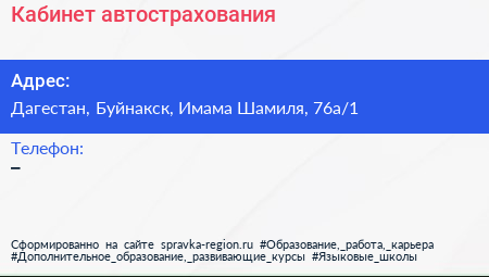 Кабинет автострахования по адресу Дагестан, Буйнакск, Имама Шамиля, 76а/1 в дальнейшем Организация, размещена в следующих категориях: