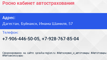 Росно, кабинет автострахования по адресу Дагестан, Буйнакск, Имама Шамиля, 57 в дальнейшем Организация, размещена в следующих категориях: