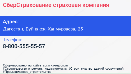 СберСтрахование, страховая компания по адресу Дагестан, Буйнакск, Ханмурзаева, 25 в дальнейшем Организация, размещена в следующих категориях:
